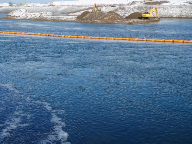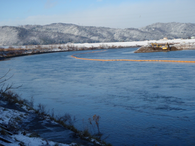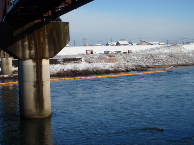 オイルフェンスがえいえんと柳2番まで張り巡らされていて右岸での釣りは出来ません。