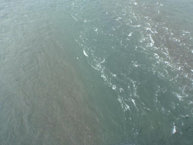 潮は止まっているようだがサラシの泡の帯が沖へと延びている。