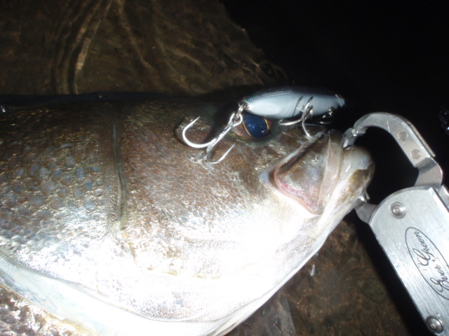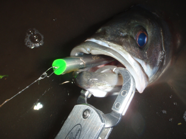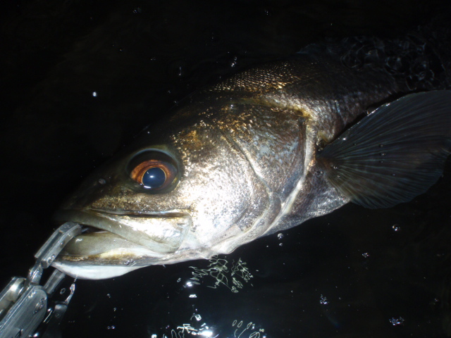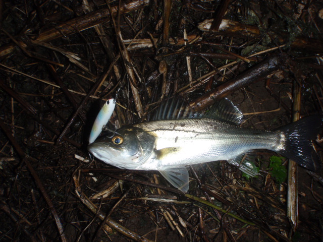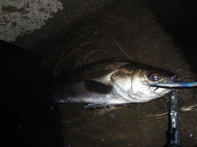 まぁまぁサイズのシーバスだ!しかし目の前のゴミだまりに突っ込まれフックアウト
