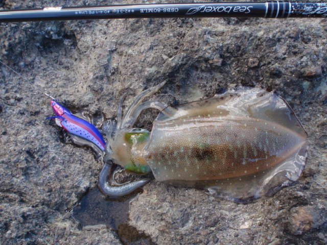 隣でアジを餌に青物を狙っていたおっちゃんとしばらく釣り談義し移動することにしました。
