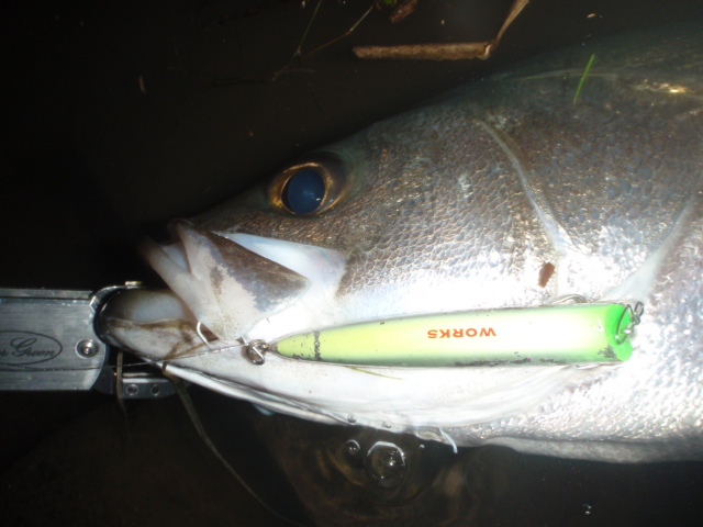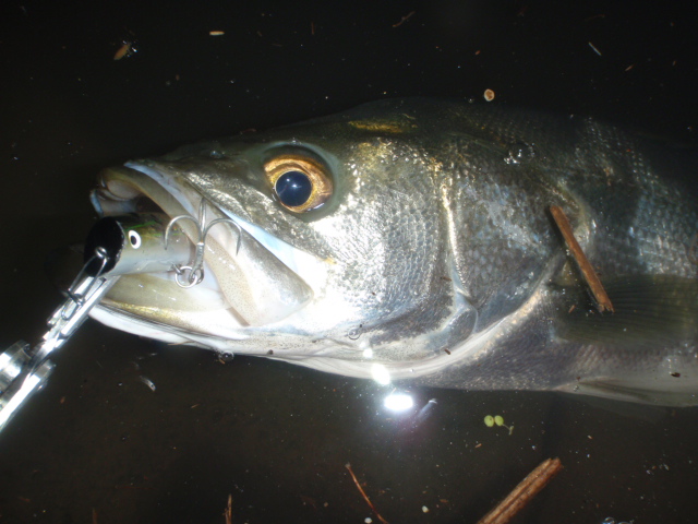 合わせを入れてロッドに重みを感じた途端に抜けてしまった後に水面でエラ荒いをする60cmクラスのシーバスはおそらくばれた奴だと思う。