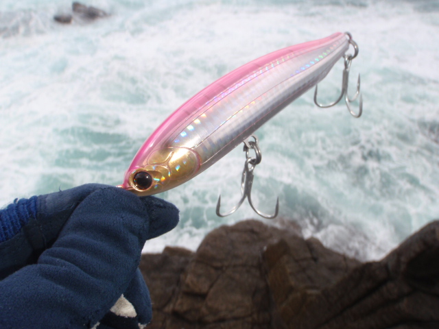 ダイビングアクションンも得意とするルアーですが波が高くてルアーがばたつくのでちょっと無理っぽい感じでした。