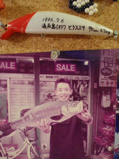 1996年、7月6日に南紀串本、通夜島で初めてキャッチしたヒラスズキBKF115でのキャッチでした。