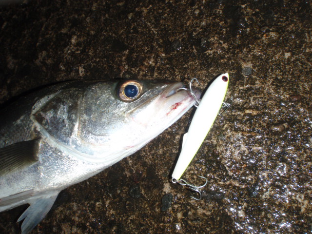 サイズに不満があるがここのところばらしが続いていたので、RB88Rリップレスでの初釣果でした。50cm弱のシーバス。