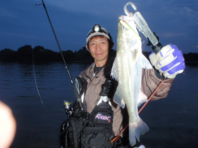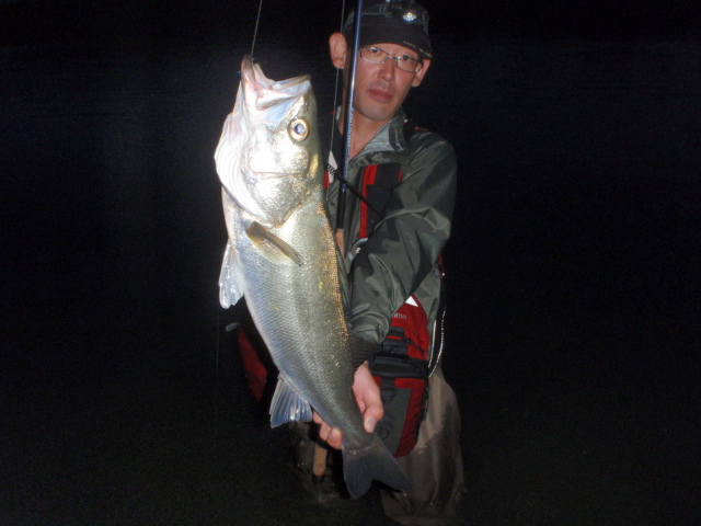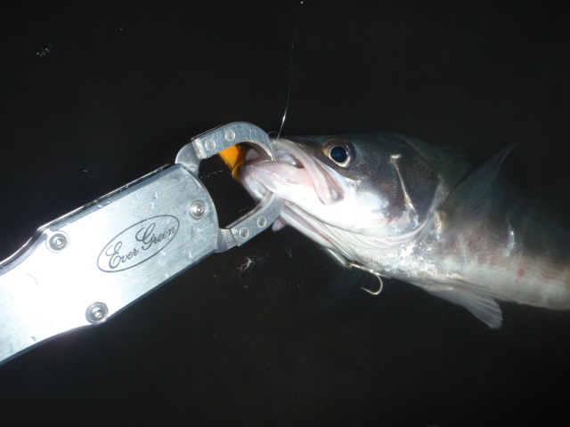 雨が降る前の釣行では、60UPのシーバスばらし