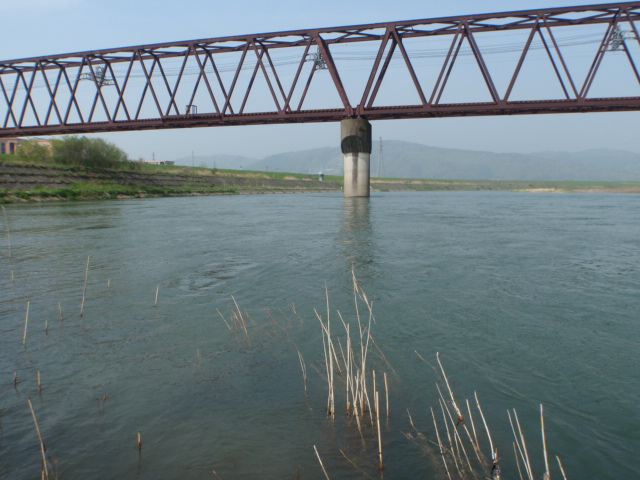 水位は60cm台、JR左岸に向かうが先行者、右岸へと向かう。