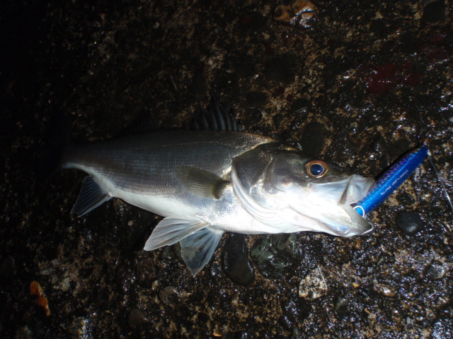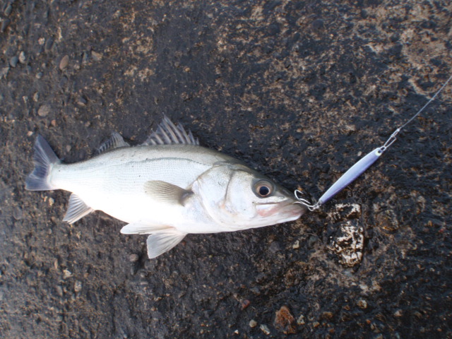 そこはテトラが!沈んだテトラの上あたりで魚体が見えた!70は超えているシーバス!よしもろた!と思ったらエラ荒いでジグが飛んできました