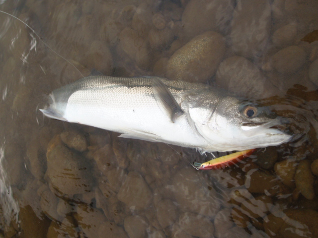しかし、サクラマスかと思いきや残念がっかりシーバスでした。