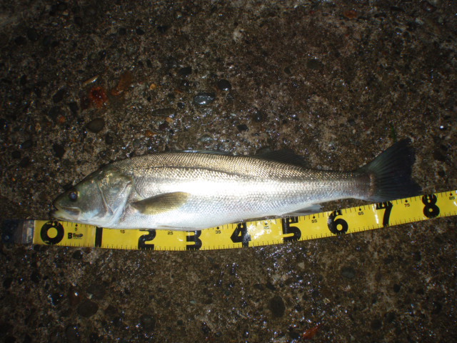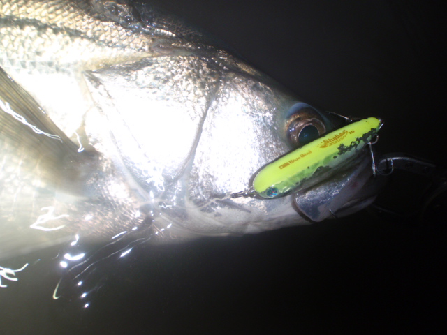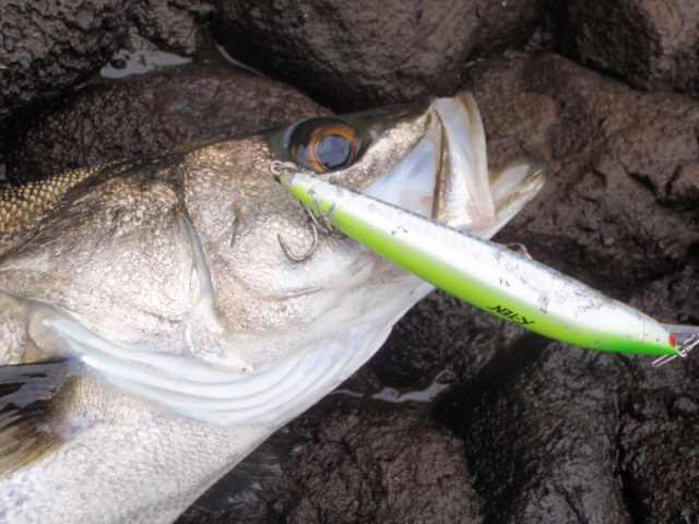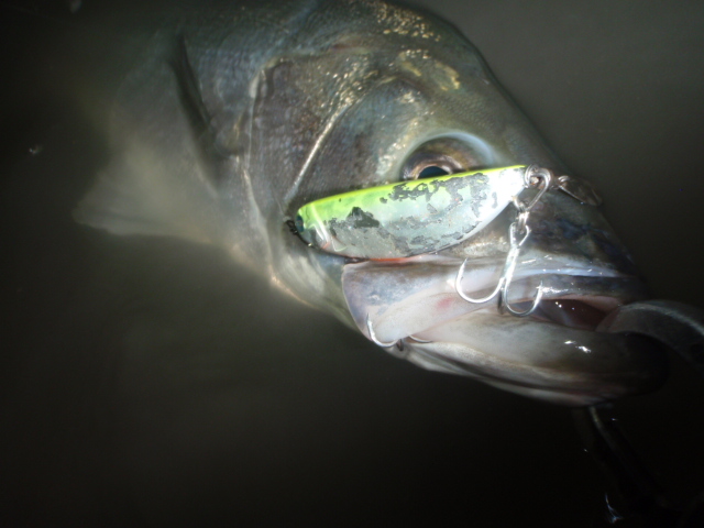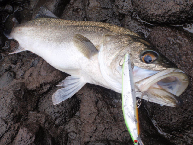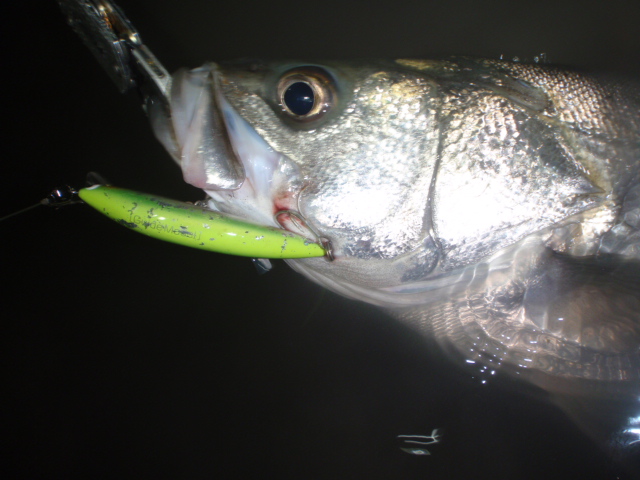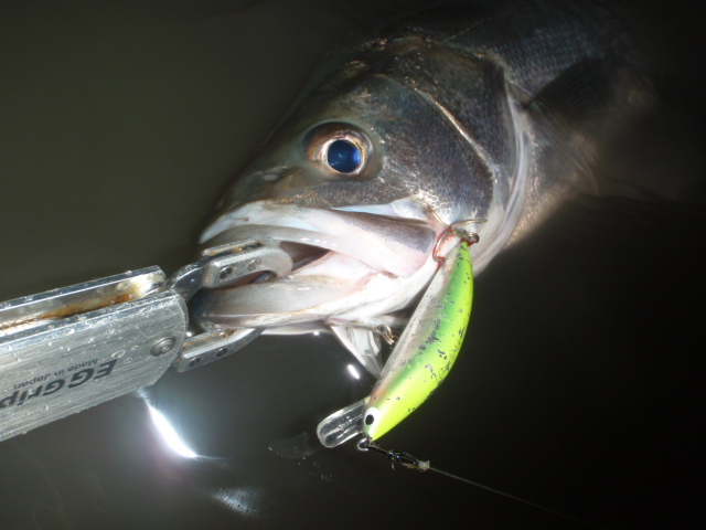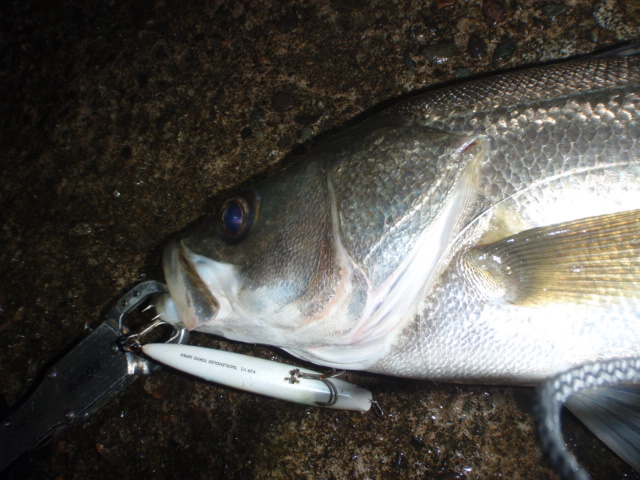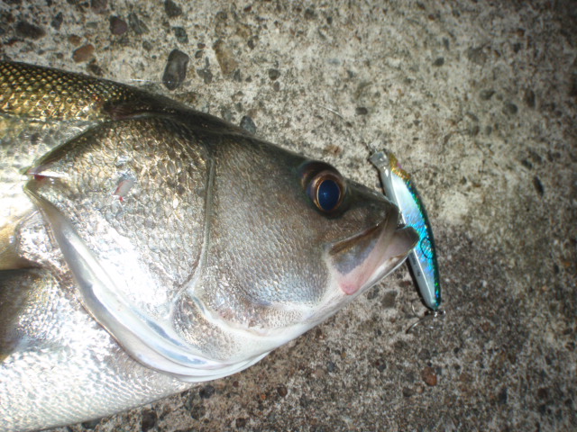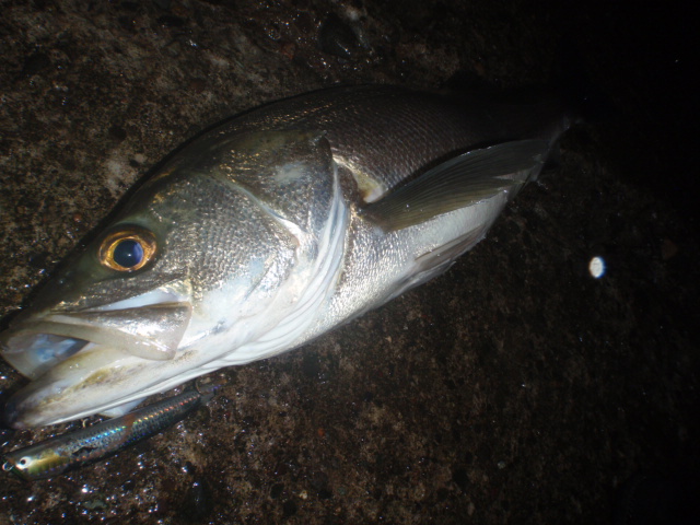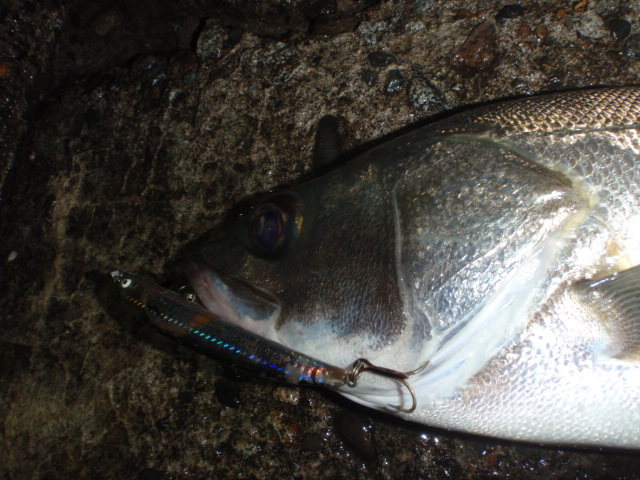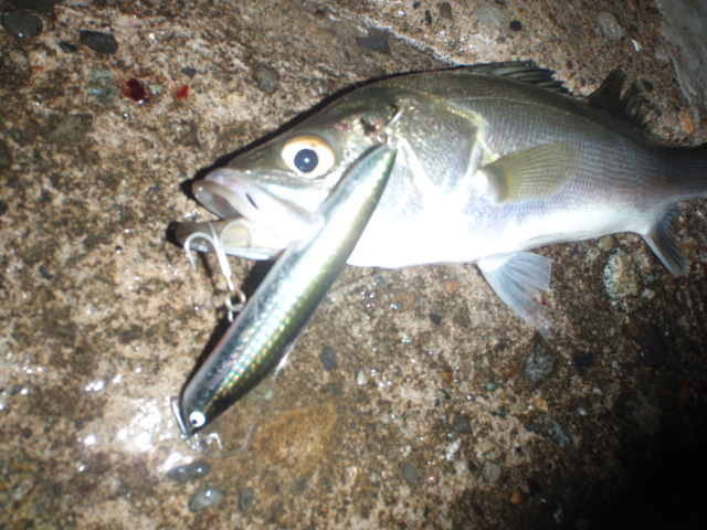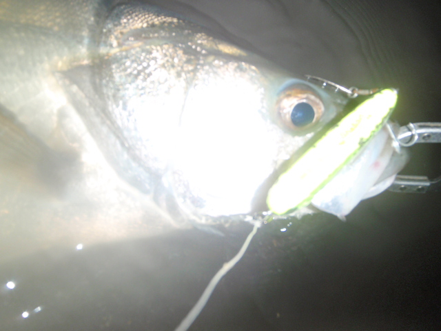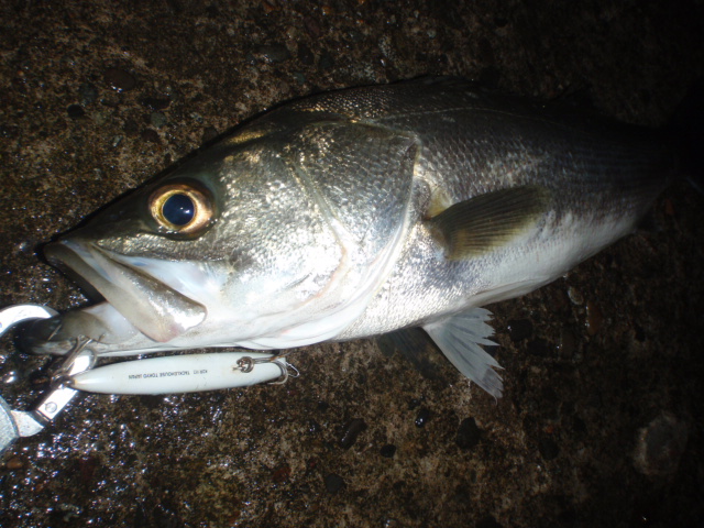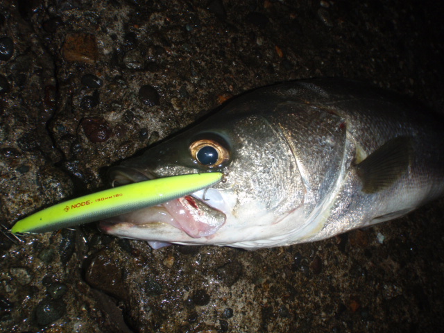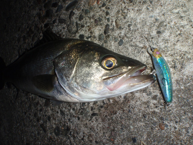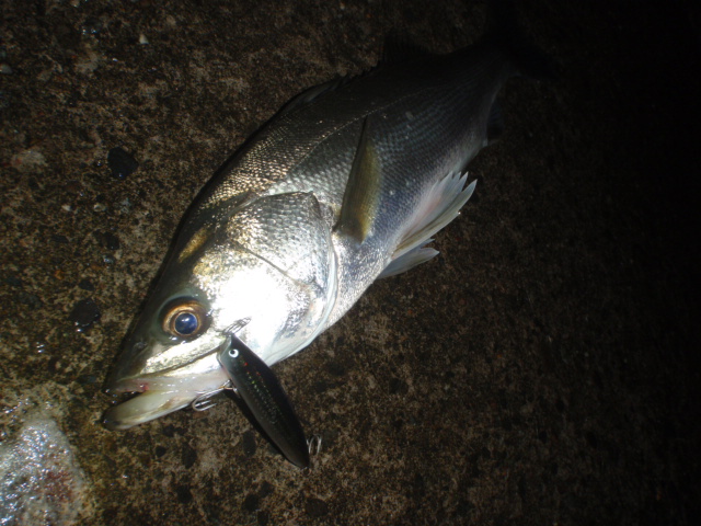あんまり引かないのでサイズは良くわからなかったのですが足元まで来るとグイグイと力強い引きを見せ久々のシーバスキャッチ