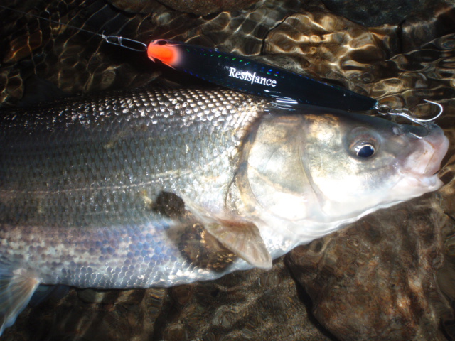 最近の昼間はなかなかに厳しいと聞いていたので、珍しくボトムをねちねちとしゃくるとズン!乗った!