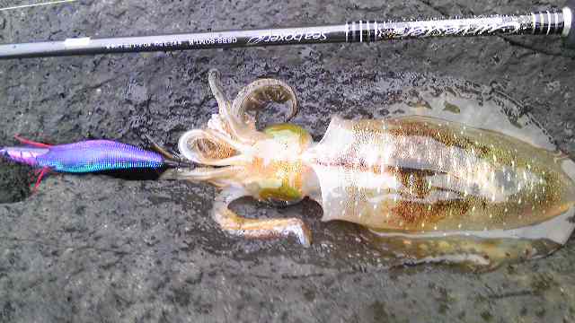 そして、ロッドをエギングロッドに持ち替えイカ狙いにシフトする。